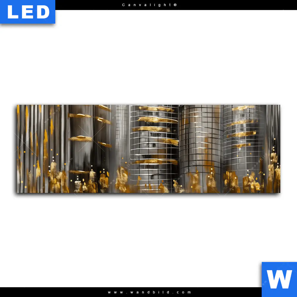 Canvalight® Leuchtbild | Goldene Skyline Vision | Panorama