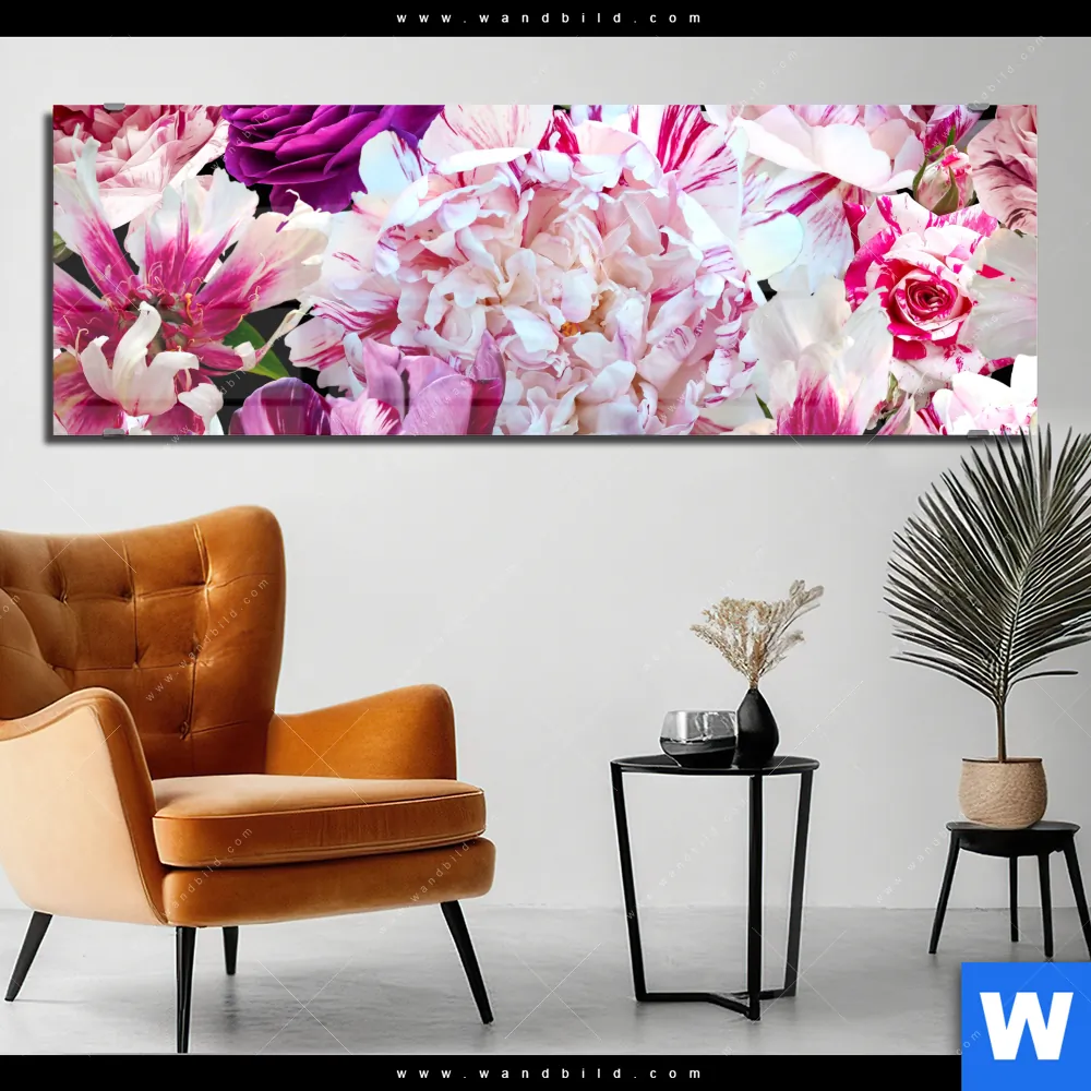 Acrylglasbild | Blühende Pfingstrosen | Panorama