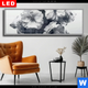 Acrylglasbild | Blumen im schwarzen Farbnebel | Panorama