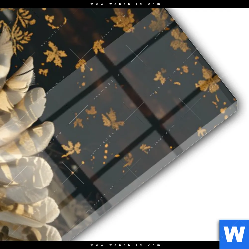 Acrylglasbild | Eule inmitten goldener Blätter | Panorama