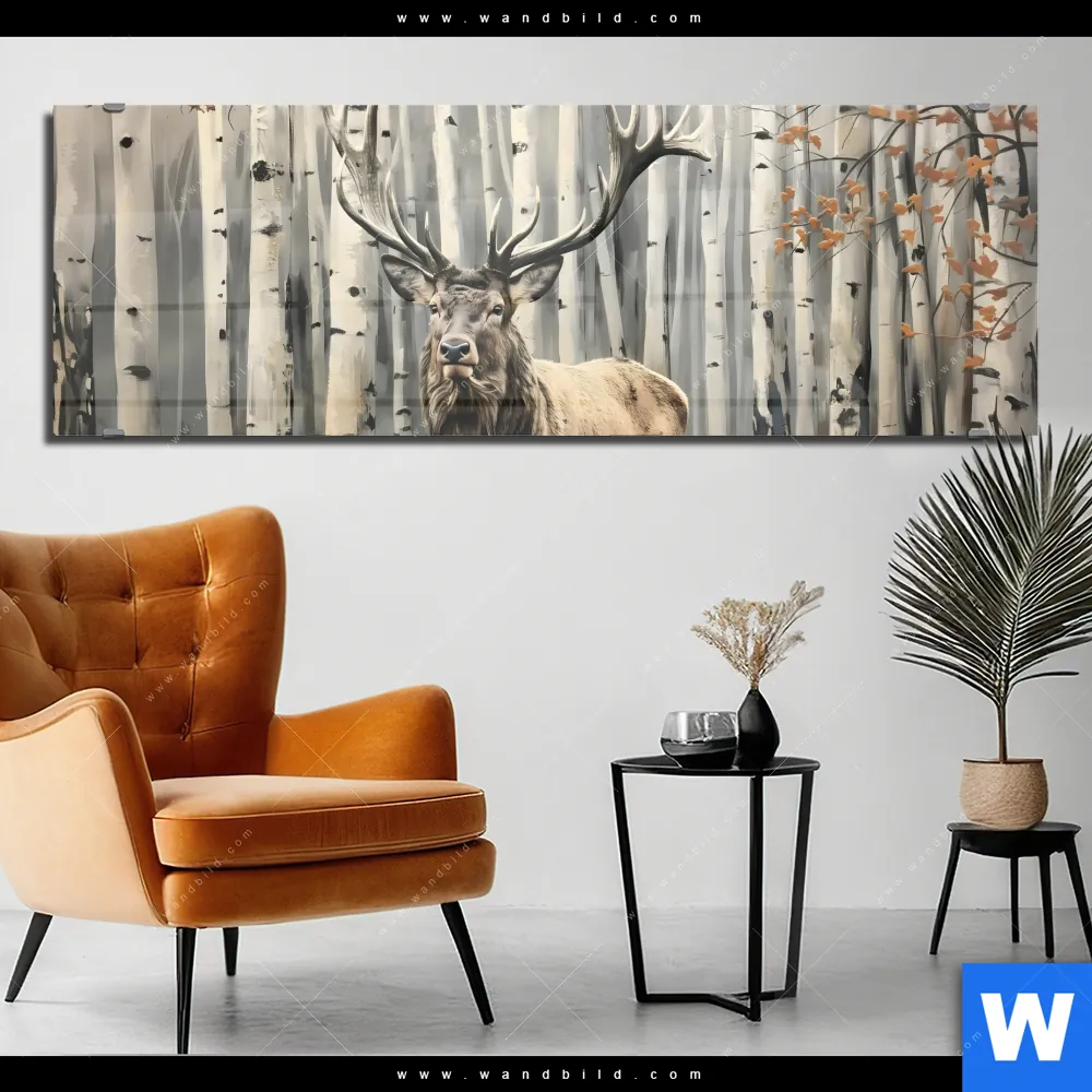 Acrylglasbild | Hirsch im Birkenwald | Panorama