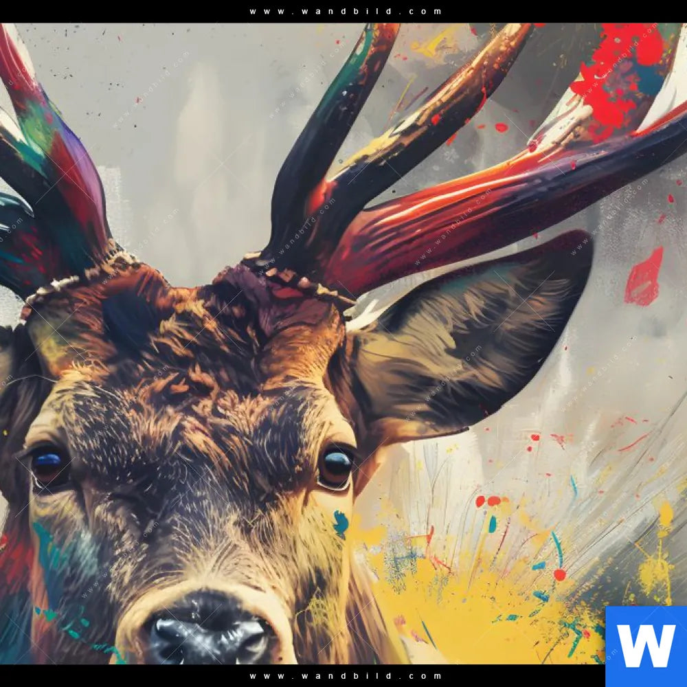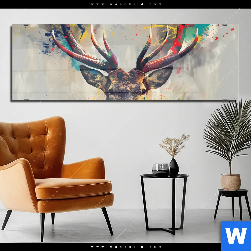 Acrylglasbild | Kreativer Hirsch mit Farbspritzern | Panorama