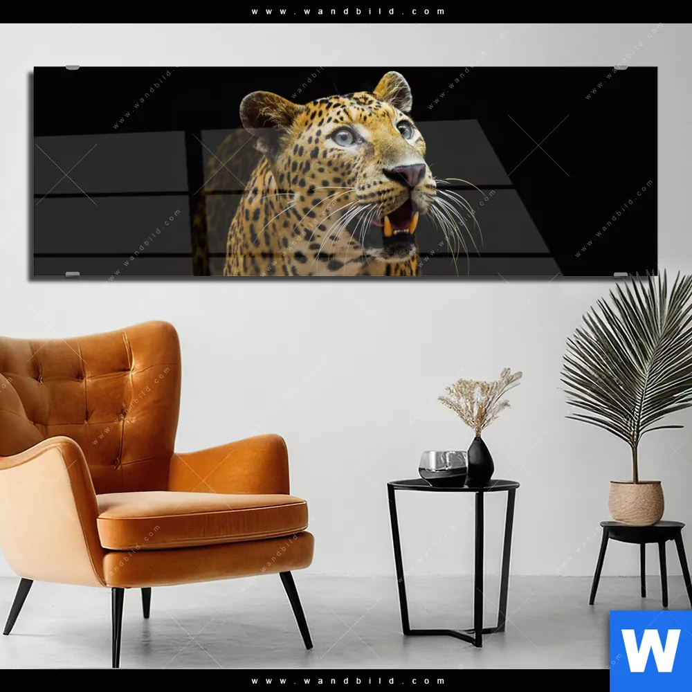 Acrylglasbild | Leopard in der Dunkelheit | Panorama