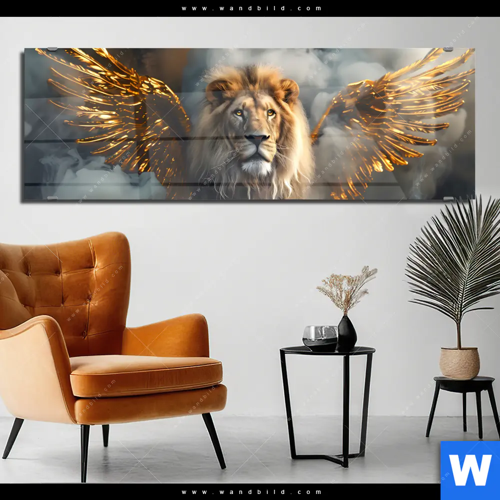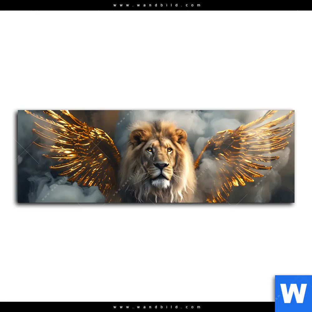 Acrylglasbild | Löwe mit goldenen Flügeln | Panorama