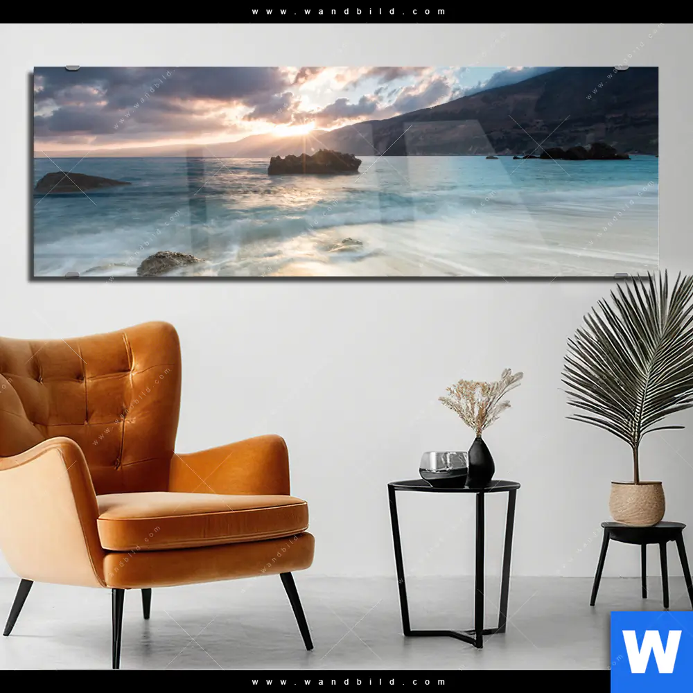 Landschaften, Strand - Meer Glasbild inkl. vormontiertem Rückrahmen