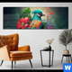 Acrylglasbild | Papagei mit bunten Farbspritzern | Panorama
