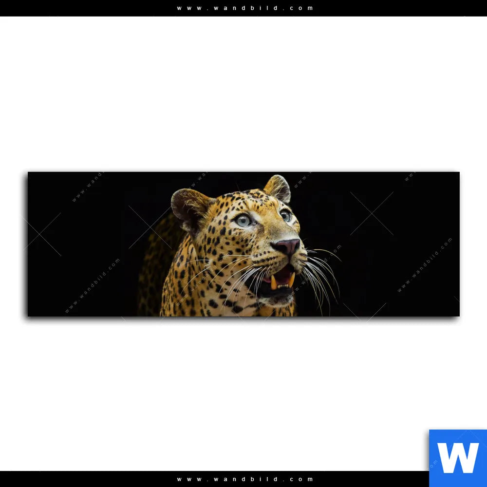 Aluminiumbild gebürstet | Leopard in der Dunkelheit | Panorama