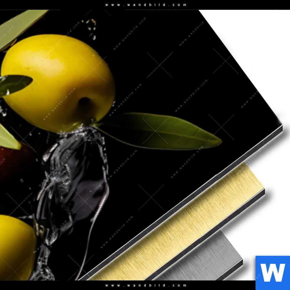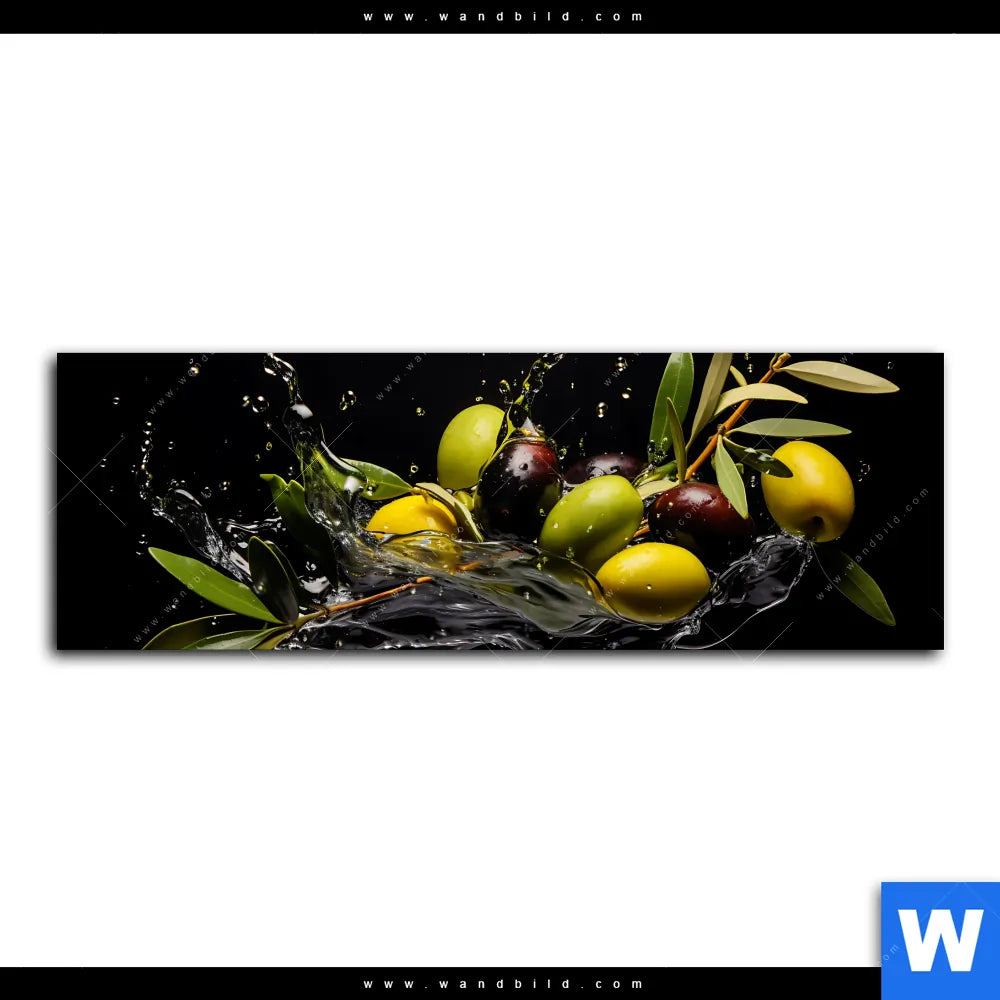 Aluminiumbild gebürstet | Oliven Splash | Panorama