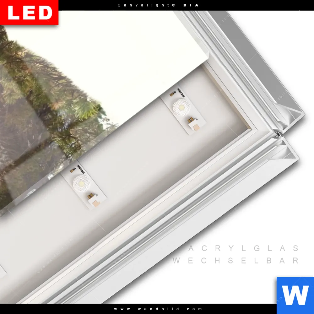 LED-Glasbild mit austauschbarem Acrylglas-Druck (Wechselbild)