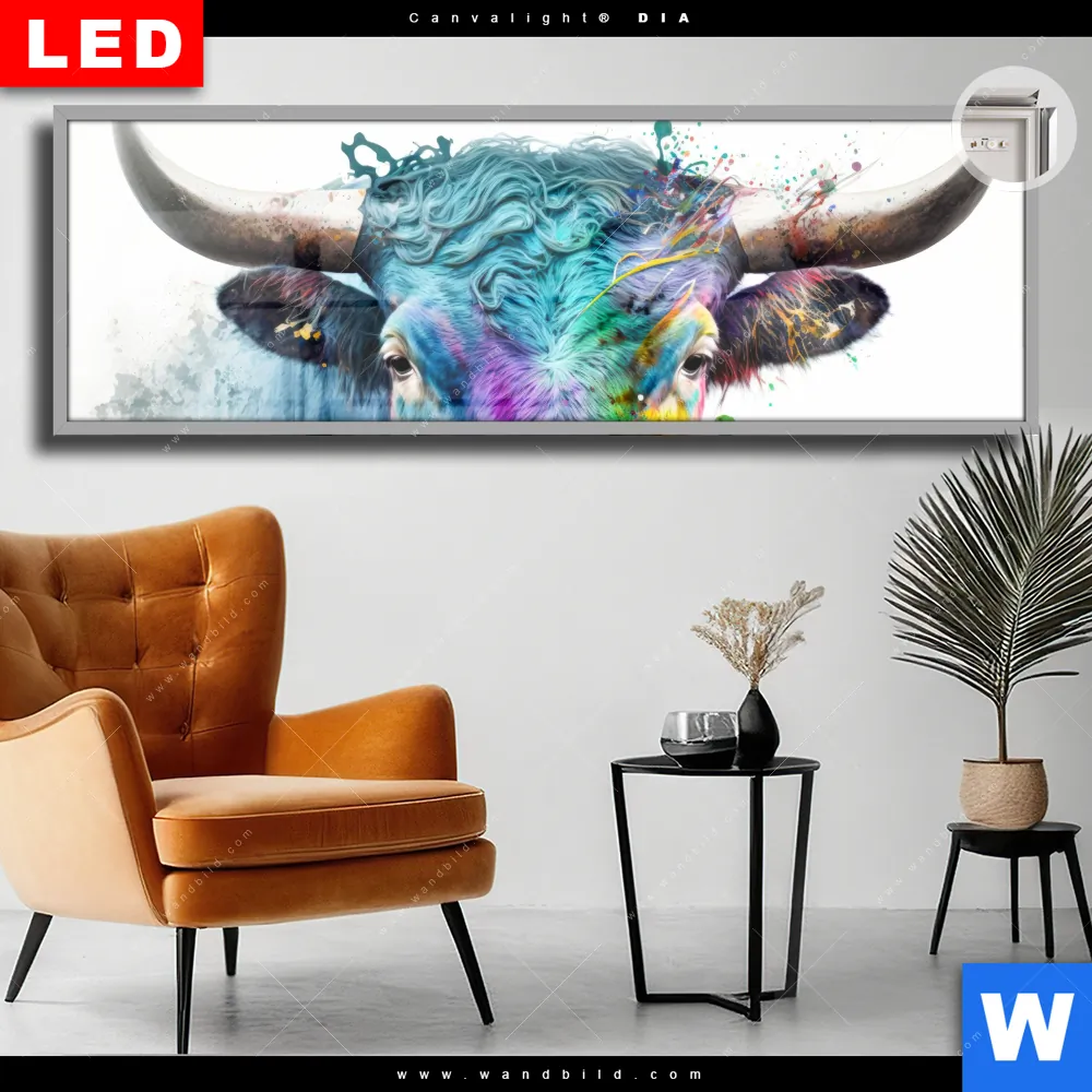 Canvalight® DIA Leuchtbild | Bunter Stierkopf | Panorama