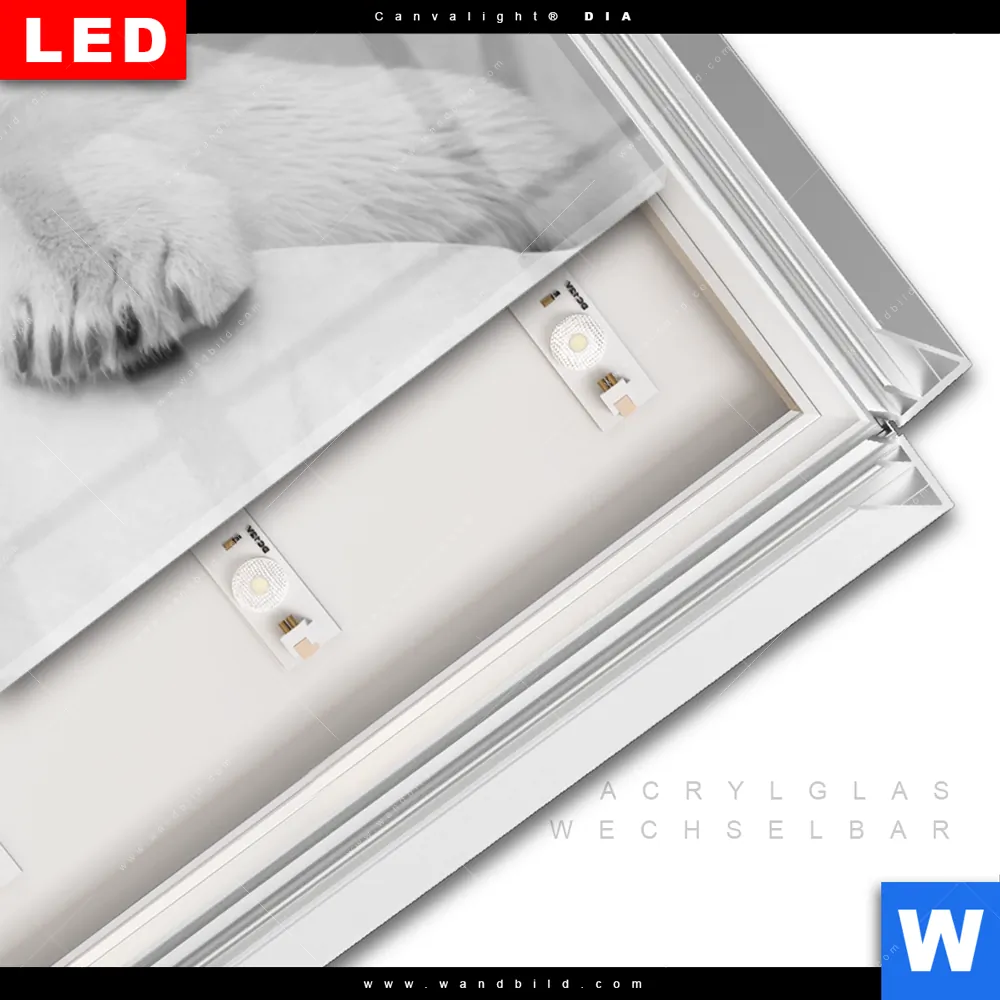 LED-Glasbild mit austauschbarem Acrylglas-Druck (Wechselbild)