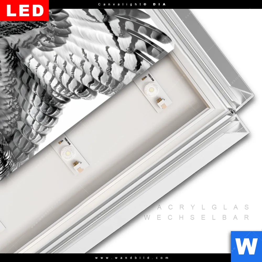 LED-Glasbild mit austauschbarem Acrylglas-Druck (Wechselbild)