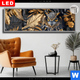 Canvalight® DIA Leuchtbild | Eule inmitten goldener Blätter | Panorama