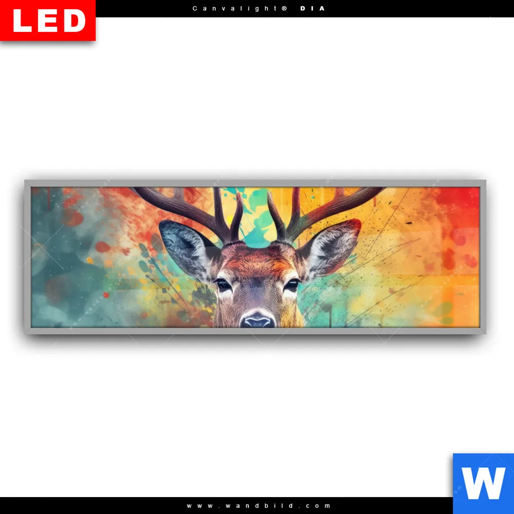 Canvalight® DIA Leuchtbild | Farbenfrohes Hirschporträt | Panorama