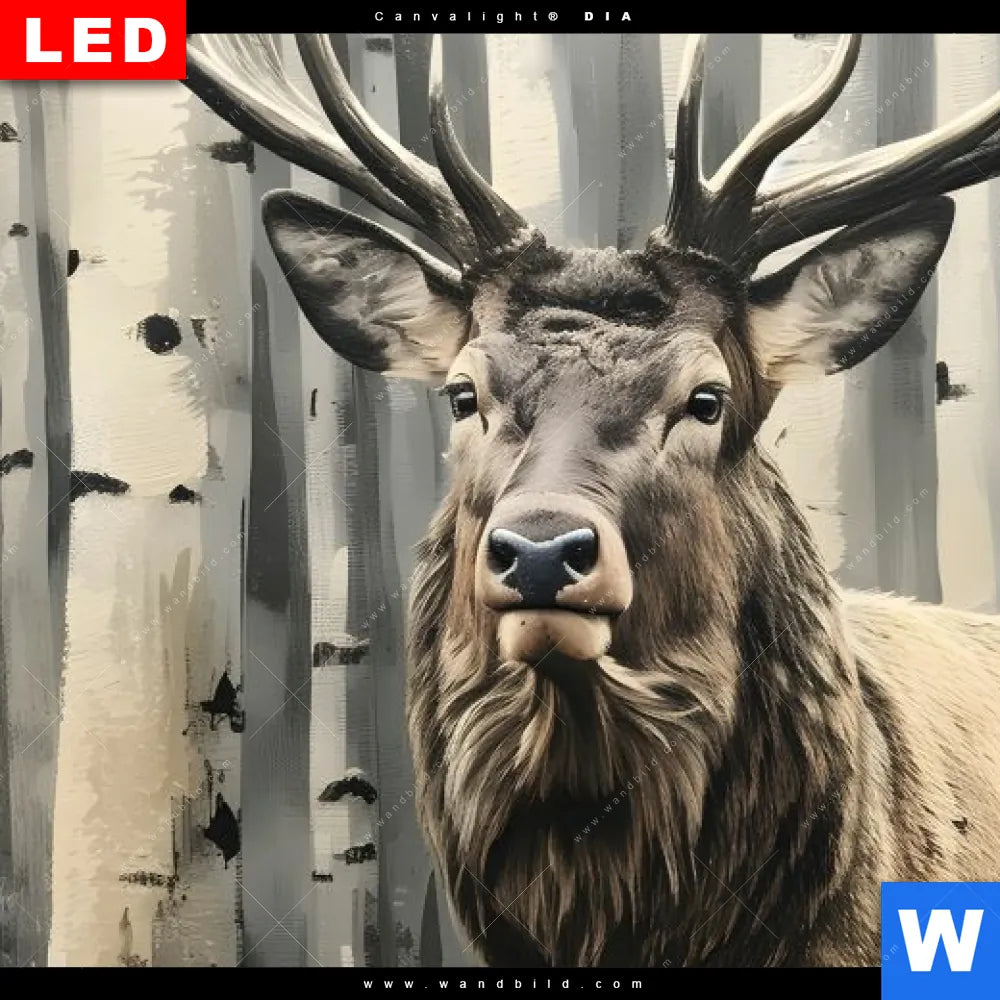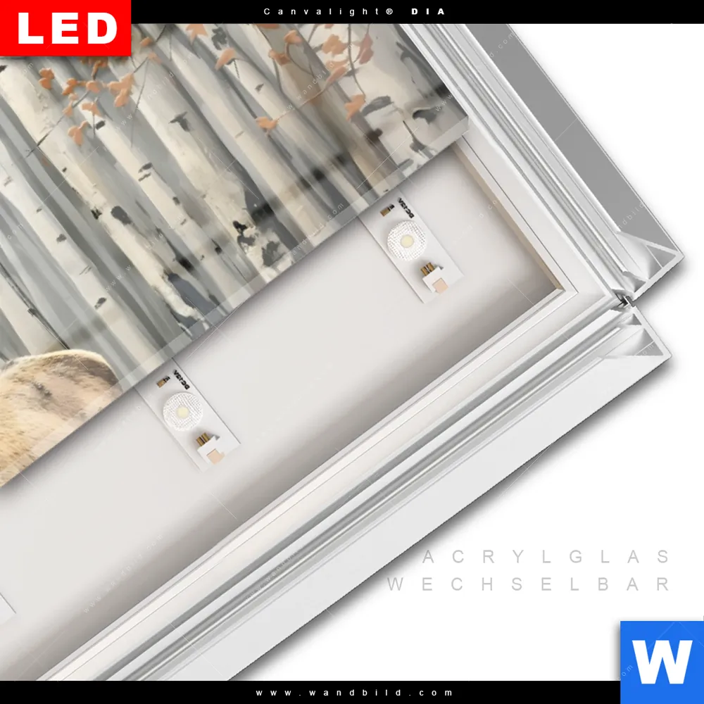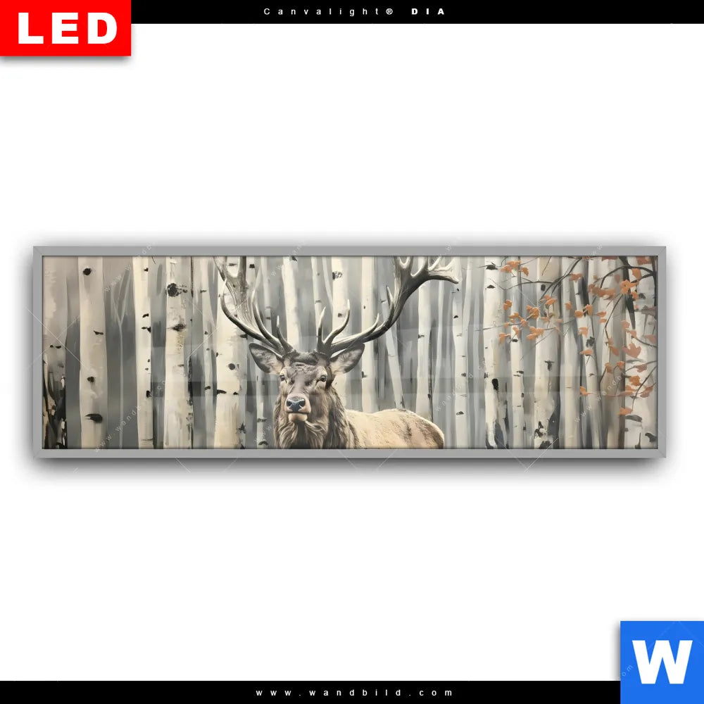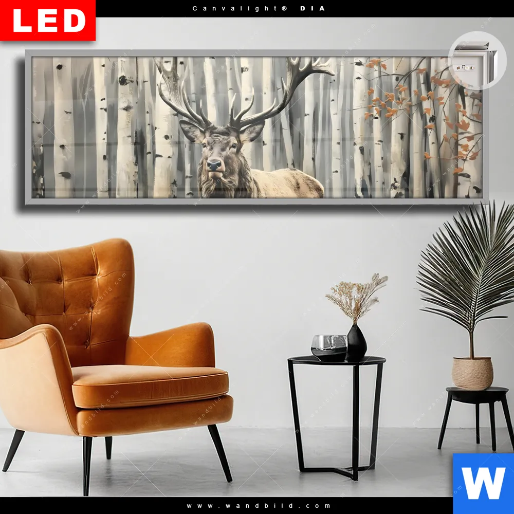Canvalight® DIA Leuchtbild | Hirsch im Birkenwald | Panorama