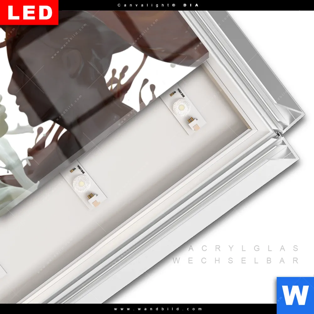 LED-Glasbild mit austauschbarem Acrylglas-Druck (Wechselbild)