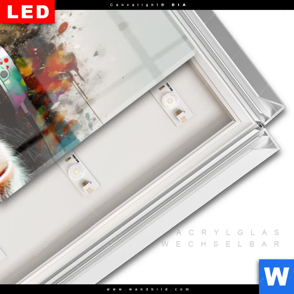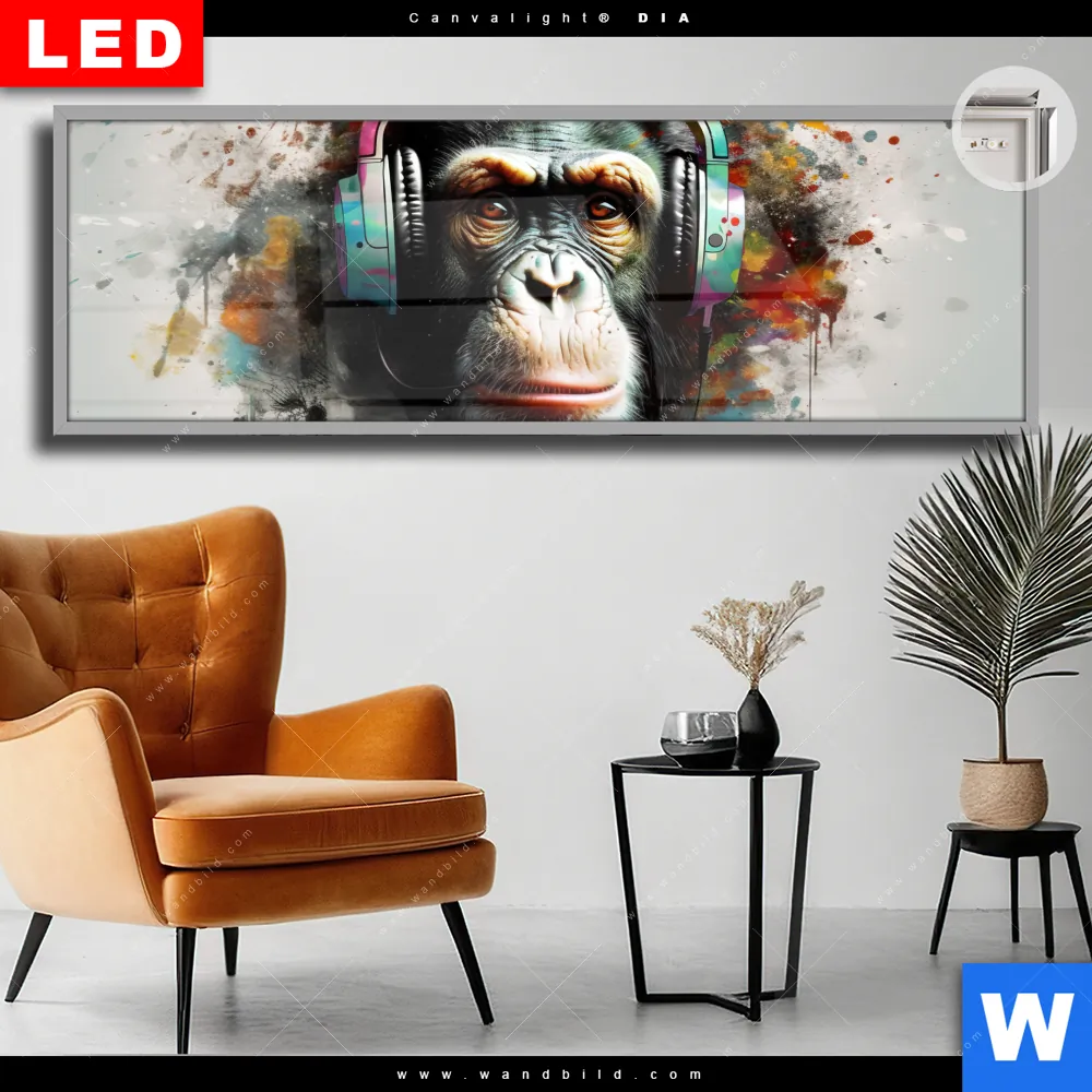 Canvalight® DIA Leuchtbild | Musikalischer Affe | Panorama