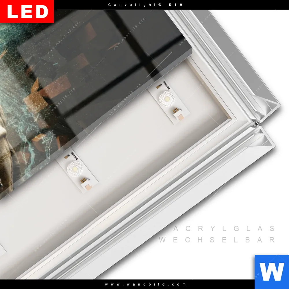 LED-Glasbild mit austauschbarem Acrylglas-Druck (Wechselbild)