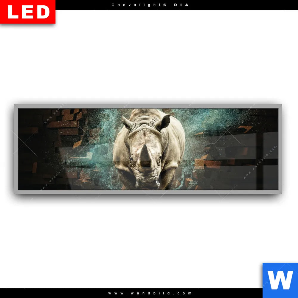 Canvalight® DIA Leuchtbild | Nashorn zerstört Wand | Panorama
