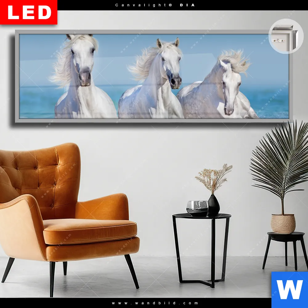 Canvalight® DIA Leuchtbild | Pferdeherde am Strand | Panorama