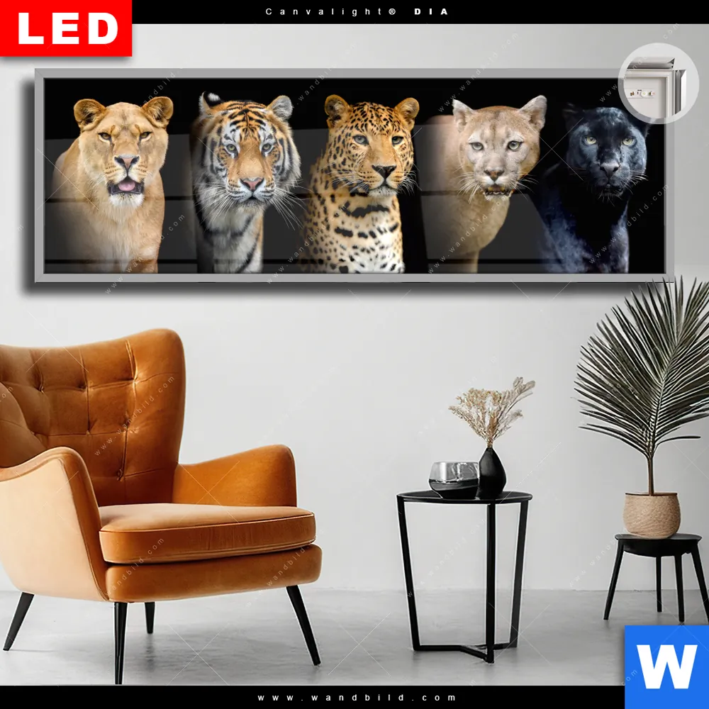 Canvalight® DIA Leuchtbild | Raubkatzen | Panorama