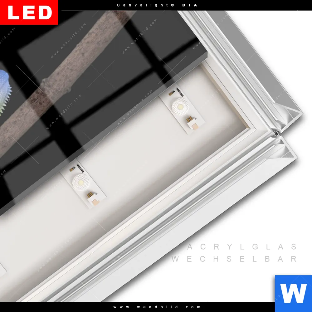 LED-Glasbild mit austauschbarem Acrylglas-Druck (Wechselbild)
