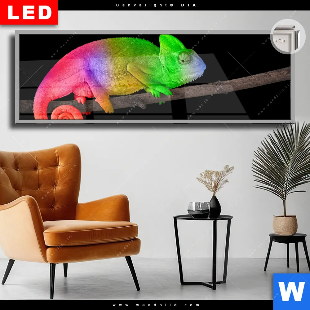 Canvalight® DIA Leuchtbild | Regenbogen Chamäleon | Panorama