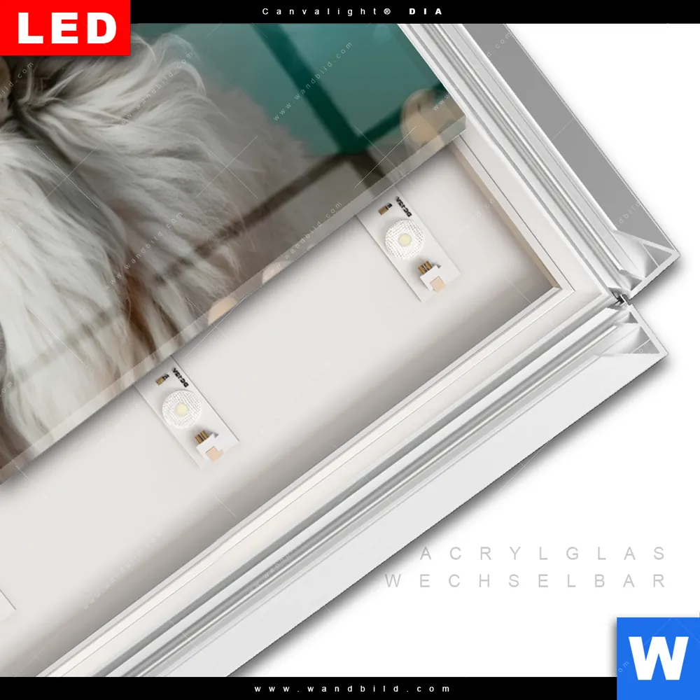 LED-Glasbild mit austauschbarem Acrylglas-Druck (Wechselbild)