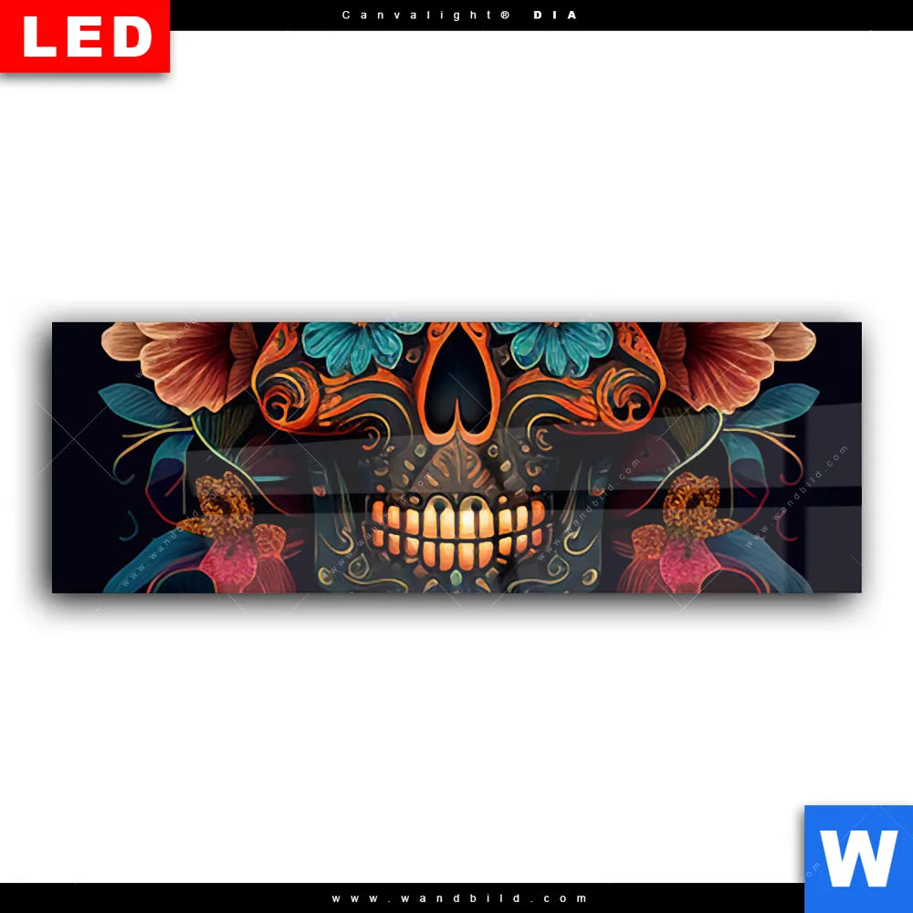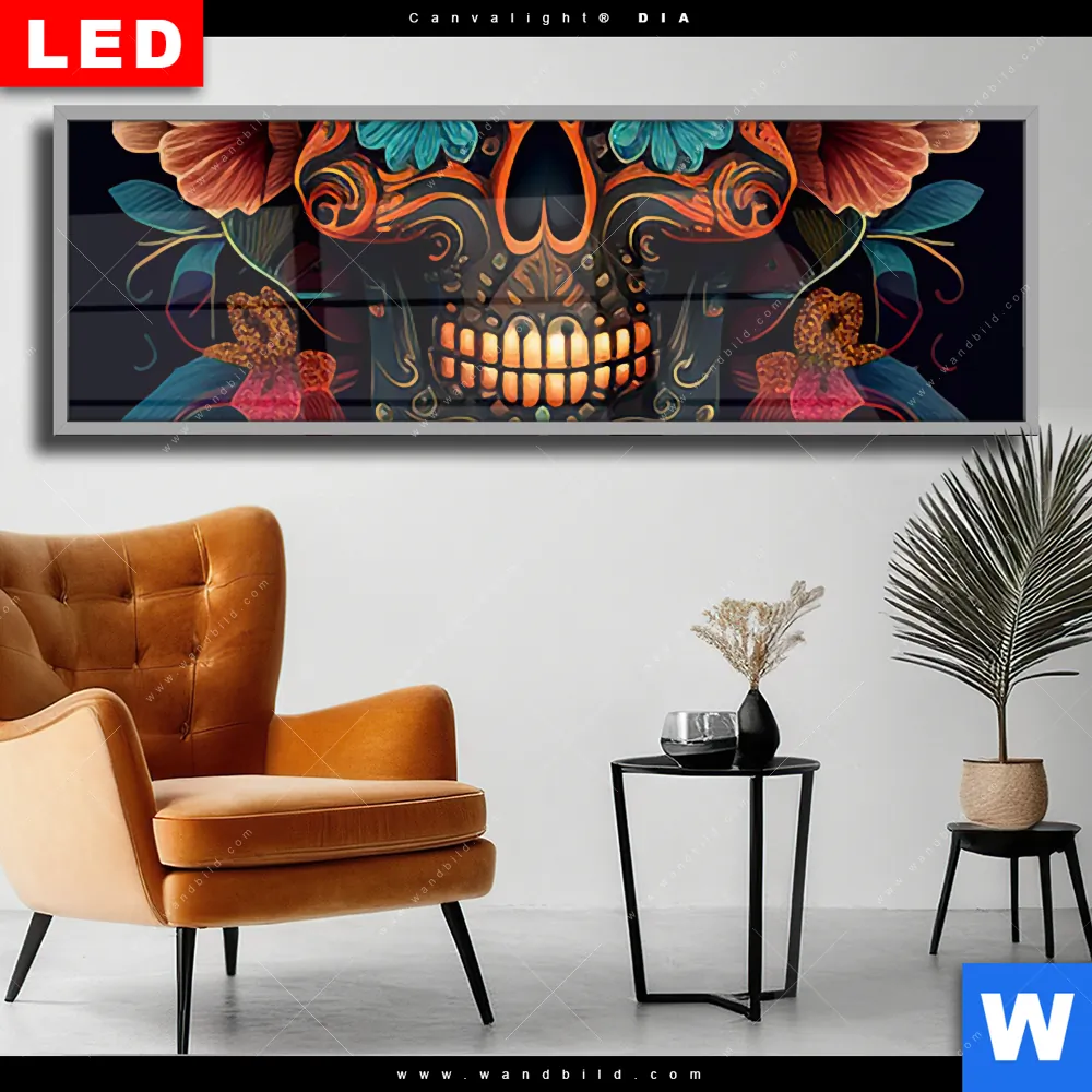 Wechselmotiv Acrylglas Canvalight® DIA | Blumenschädel schwarz | Panorama