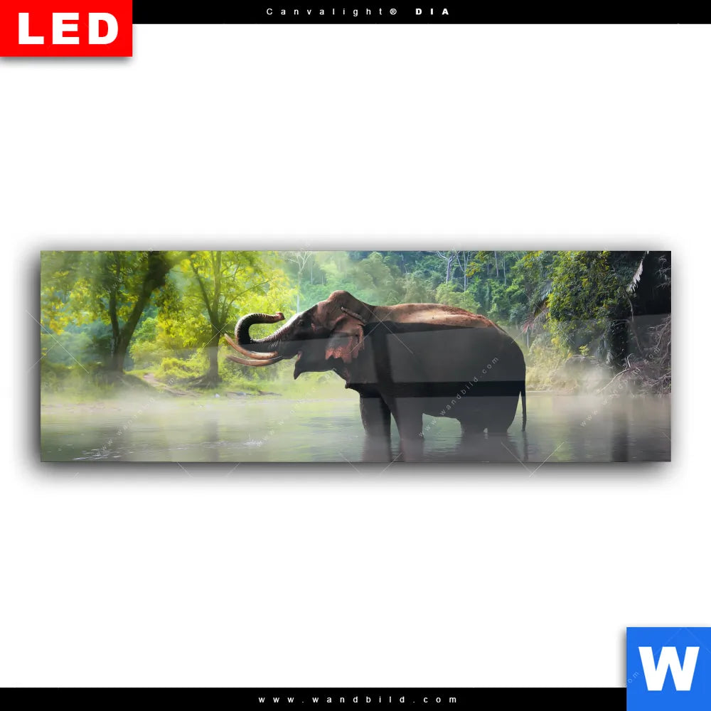 Wechselmotiv Acrylglas Canvalight® DIA | Elefant im Wasser | Panorama