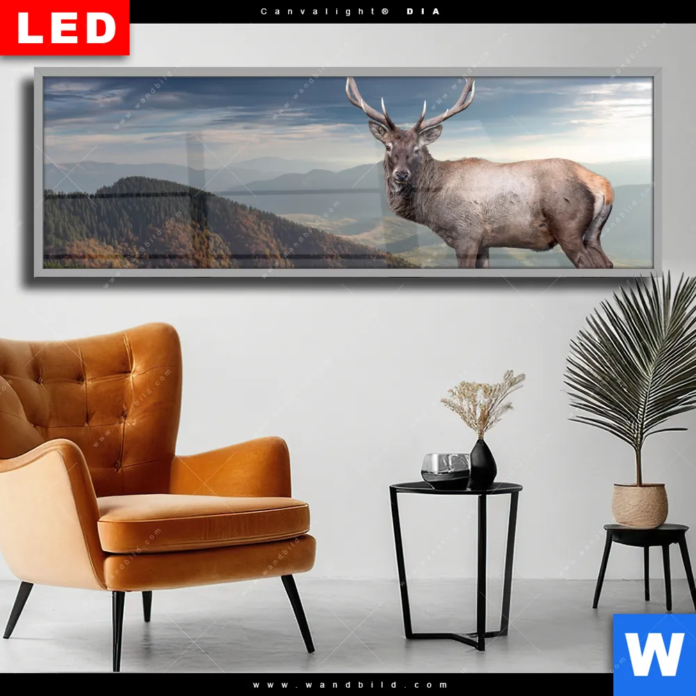 Wechselmotiv Acrylglas Canvalight® DIA | Hirsch in der Herbstzeit | Panorama
