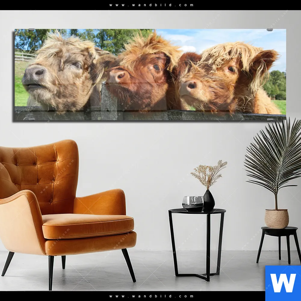 Acrylglasbild | Drei Schottische Rinder | Panorama