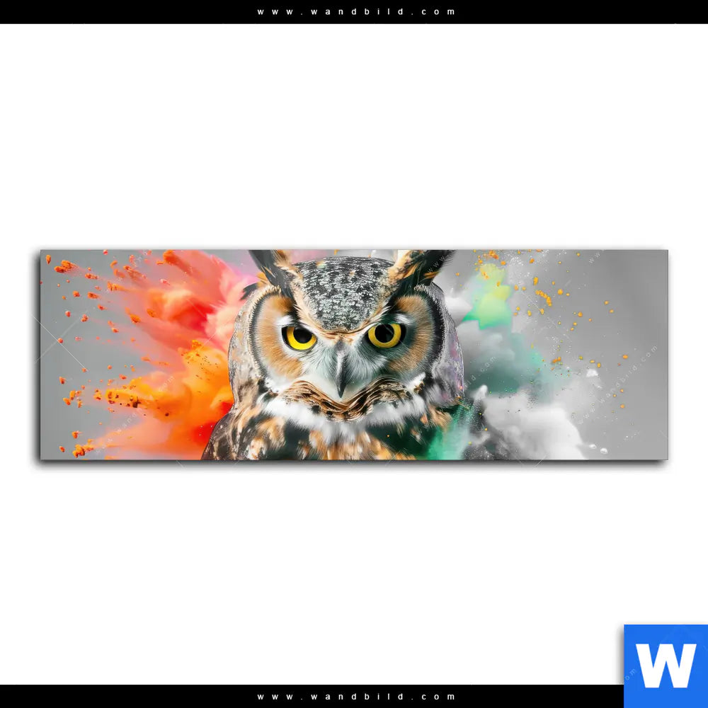 Acrylglasbild | Farbenexplosion mit Eule | Panorama
