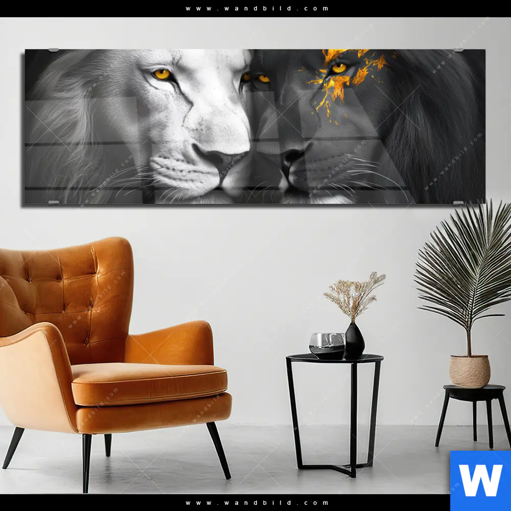 Acrylglasbild | Zwei Löwen Schwarz & Weiß | Panorama