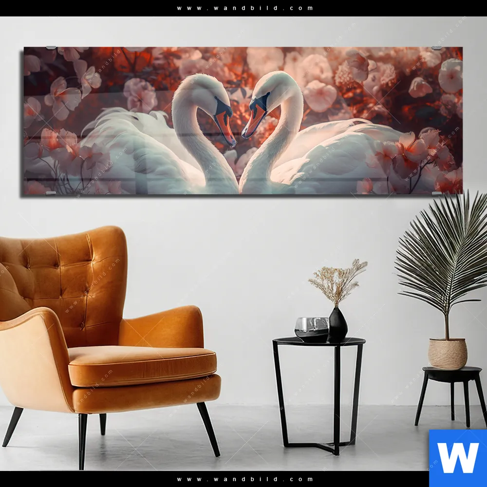 Acrylglasbild | Zwei Schwäne im Wasser | Panorama