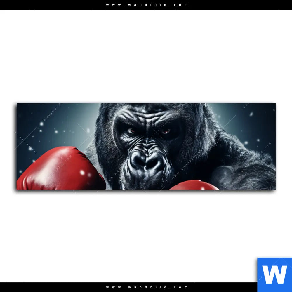 Alu-Dibond Bild | Gorilla mit roten Boxhandschuhen | Panorama