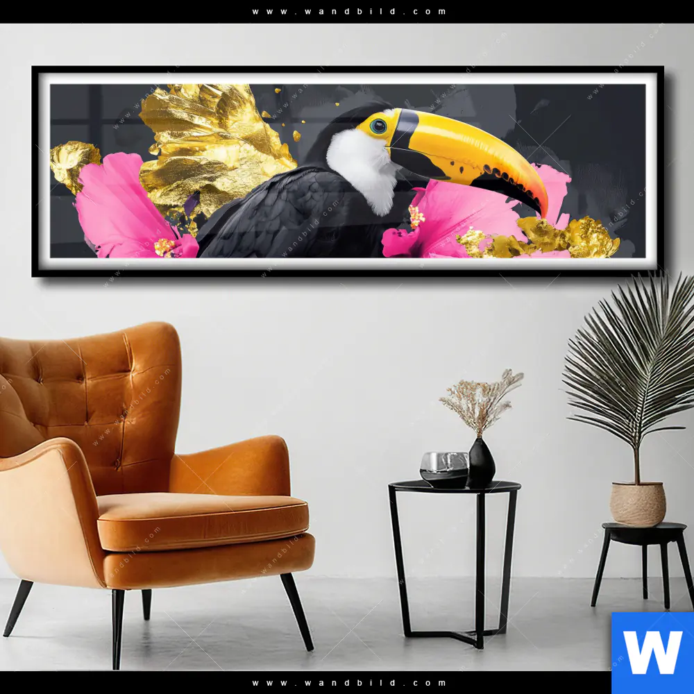 Poster | Exotischer Tukan mit Blüten | Panorama
