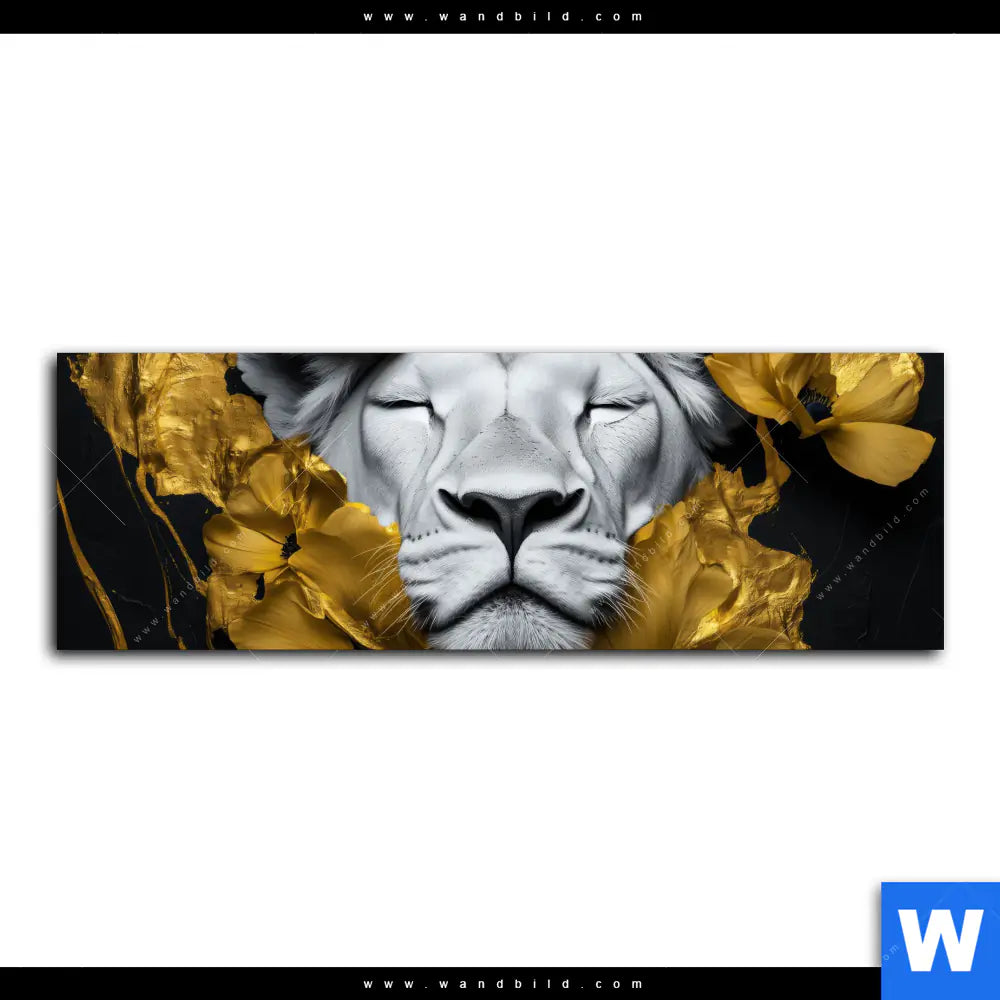 Poster | Weiße Löwin mit Goldblüten | Panorama
