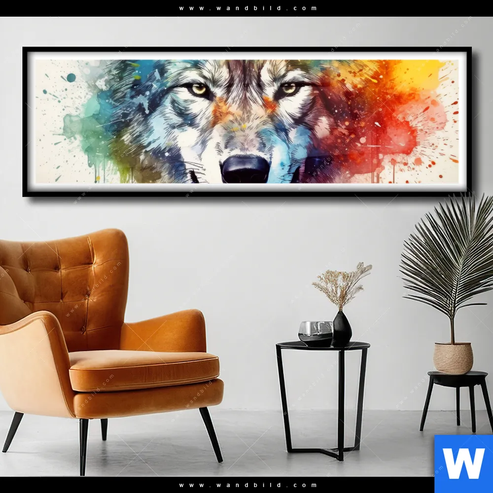 Poster | Wolf mit bunten Farbspritzern No. 2 | Panorama