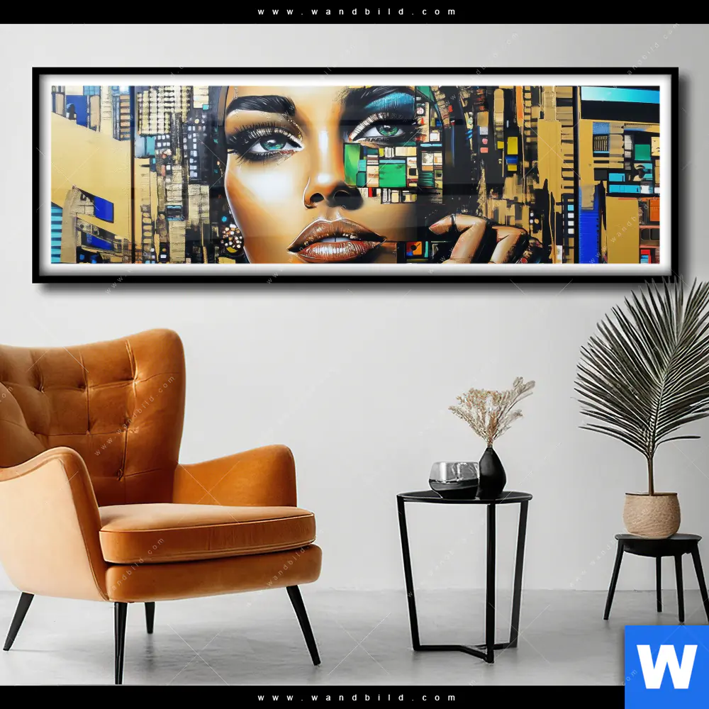 Poster | Zoe - Mosaikgesicht im Großstadtlicht | Panorama