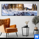 Acrylglasbild | Schneebedeckte Landschaft am Fluss | Panorama