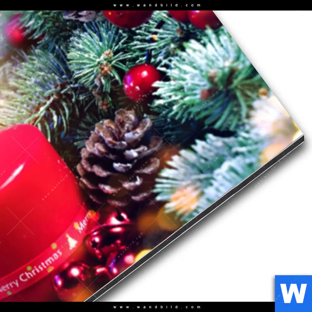 Alu-Dibond Bild | Adventskerze mit Weihnachtsschmuck | Panorama