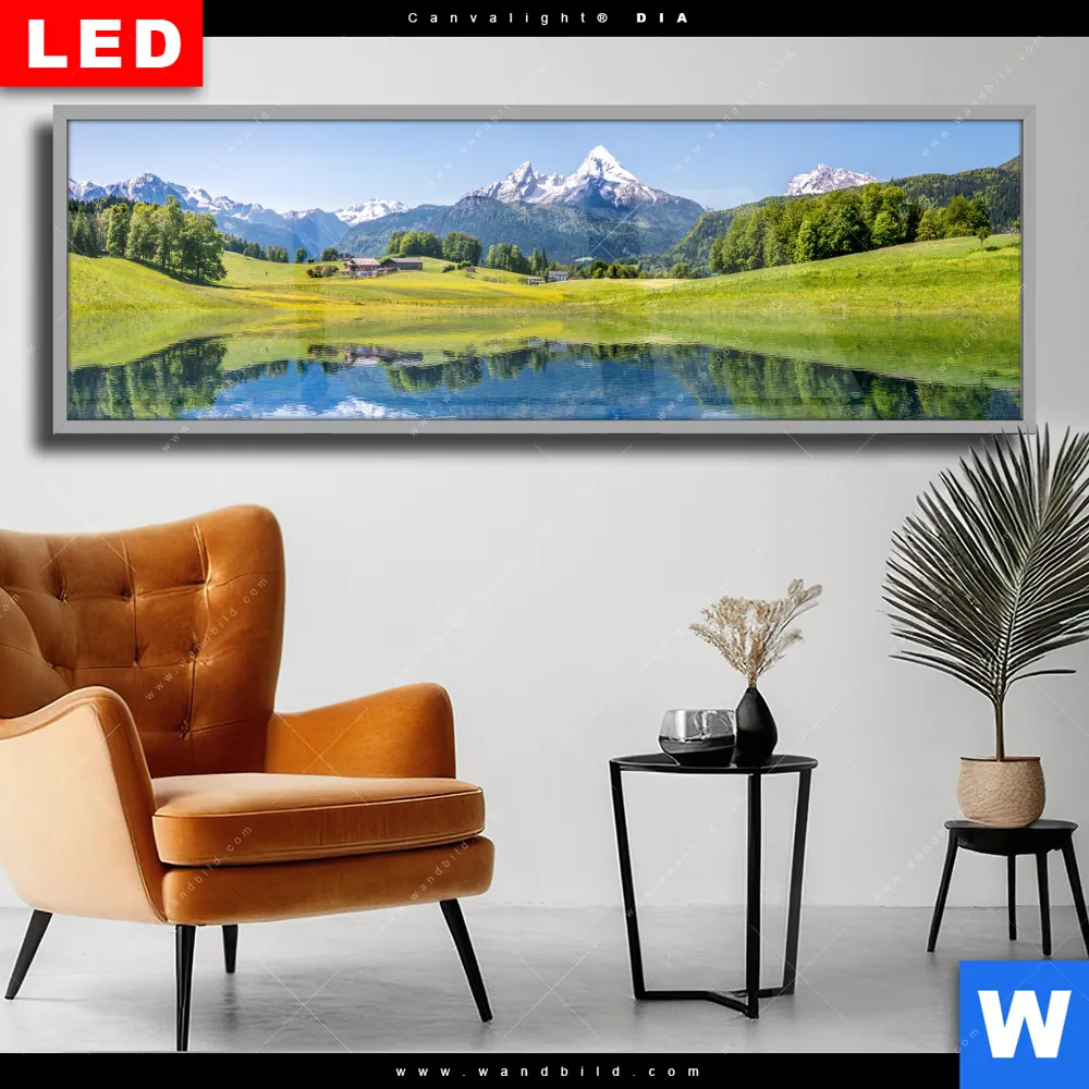 Wechselmotiv Acrylglas Canvalight® DIA | Sommerlandschaft in den Alpen | Panorama