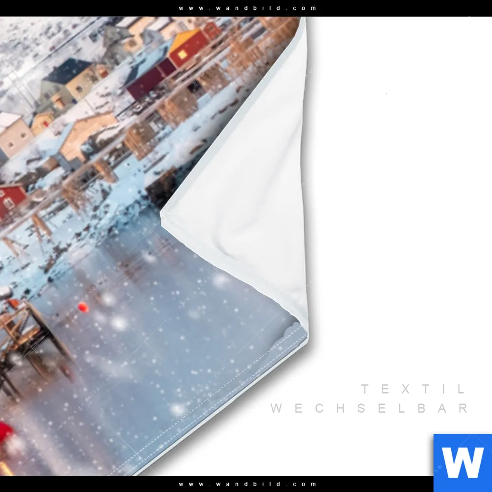 Wechselmotiv Textil | Skandinavisches Dorf im Schnee | Panorama