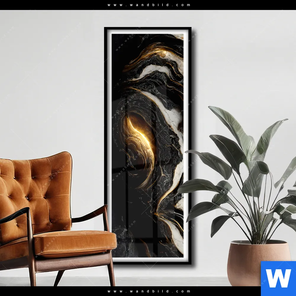 Poster | Liquid Marmor Schwarz Gold | Schmal