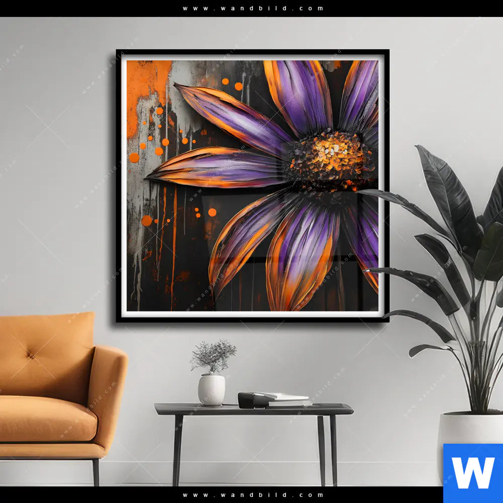 Poster | Abstrakte Blume in Orange & Lila | Quadrat