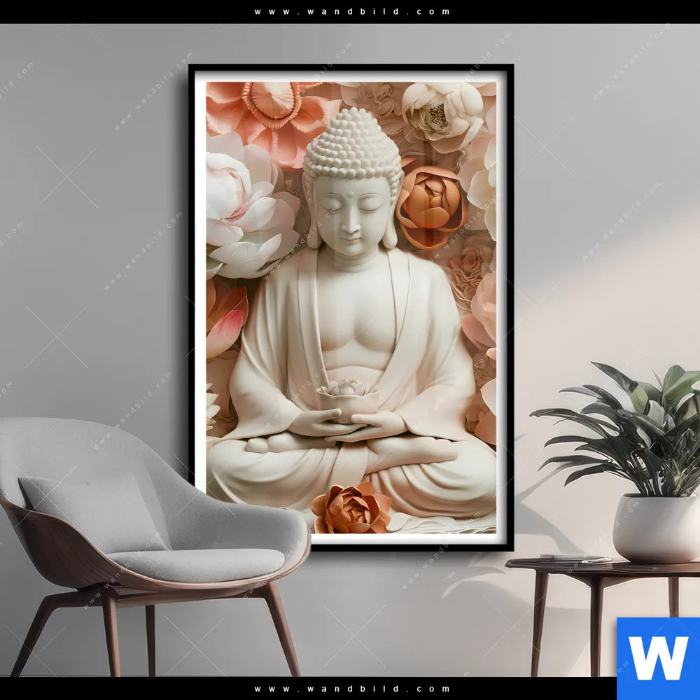Poster | Meditierender Buddha mit Blüten | Hochformat