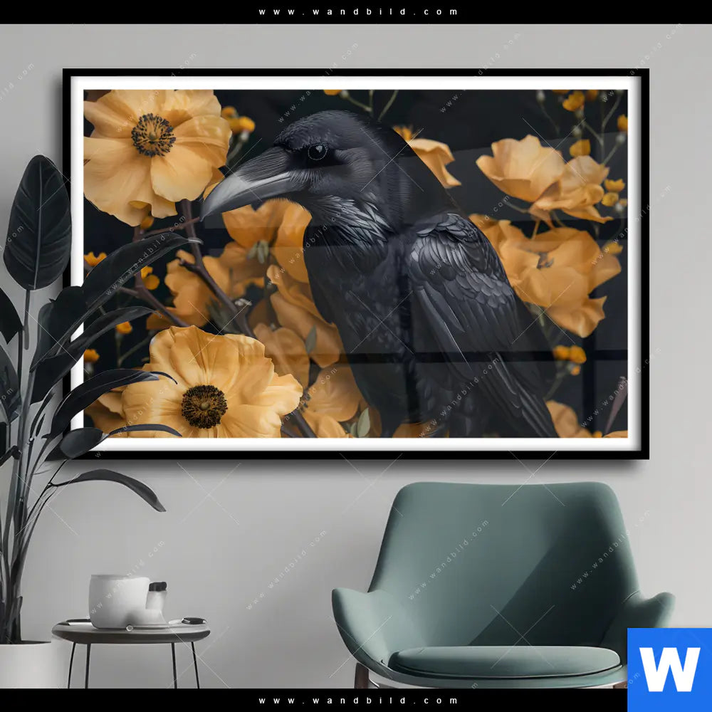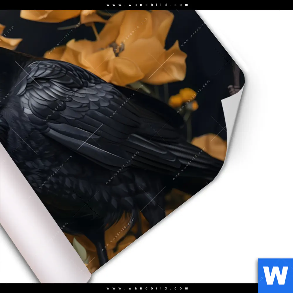 Poster | Naturbild - Rabe & Blüten | Querformat