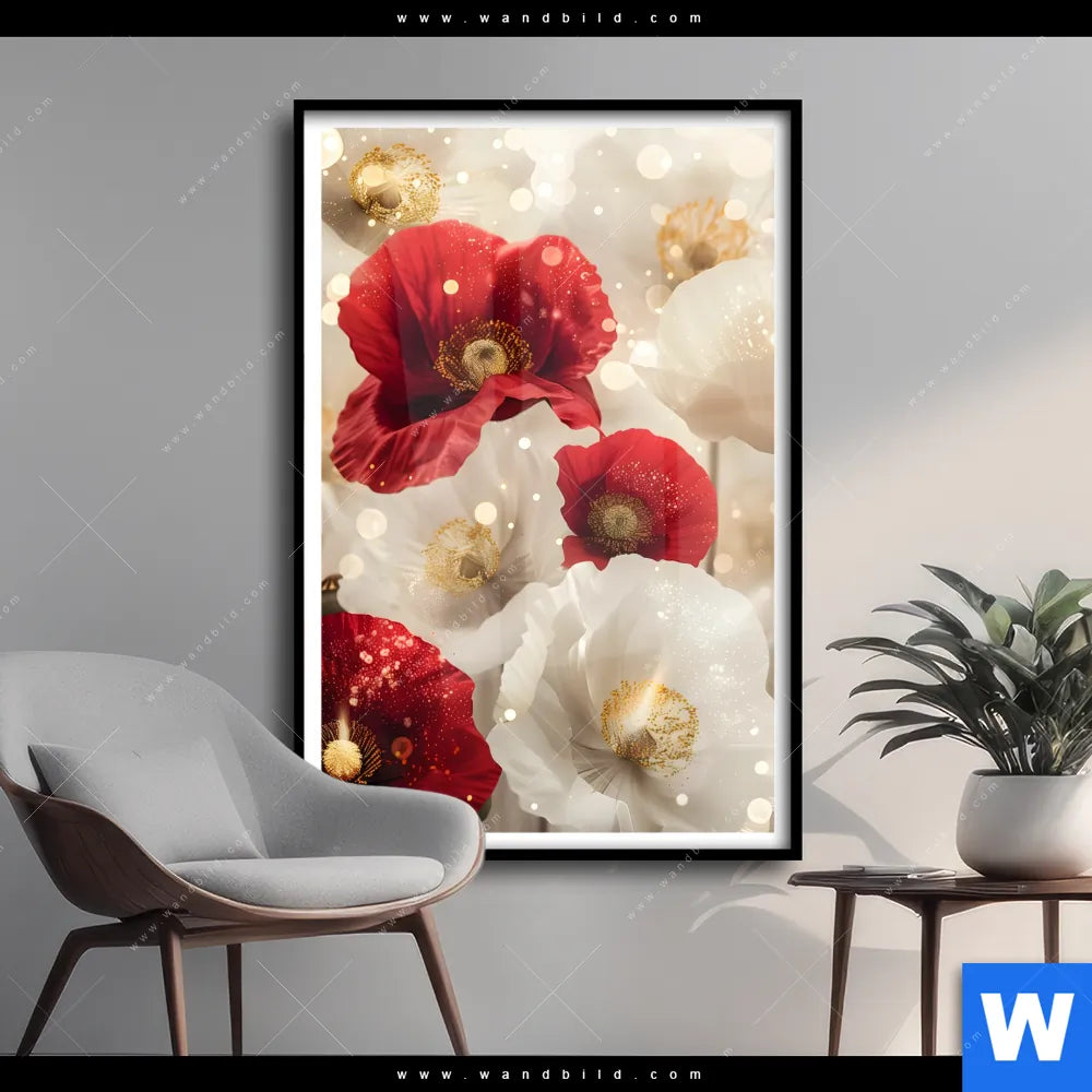 Poster | Rote und weiße Mohnblumen | Hochformat
