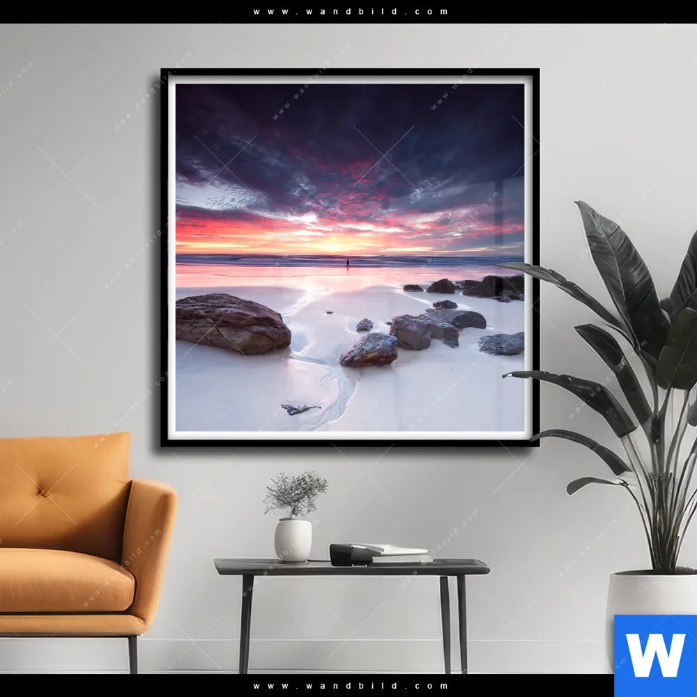 Poster | Sonnenaufgang am Strand mit Felsen | Quadrat